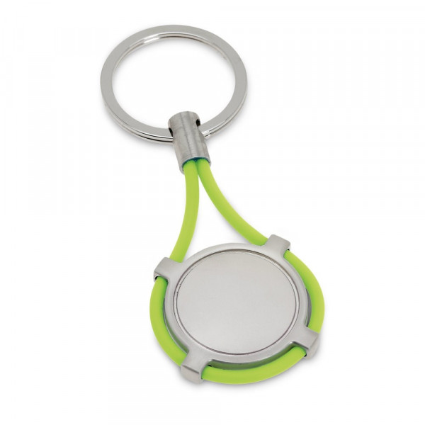 Schlüsselanhänger aus Metall und Silikon, kreisförmig. Geliefert in einer Geschenkschachtel. 36 x 66 x 5 mm