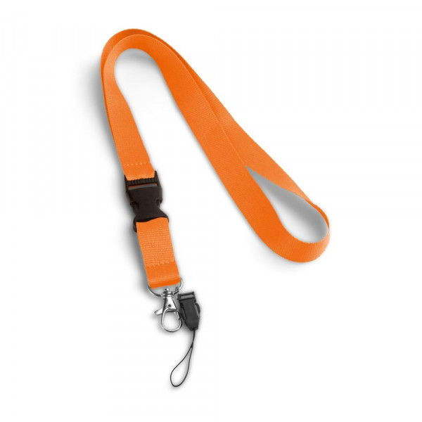 Lanyard aus Polyester, 20 mm breit mit einem Schlüsselband und einer abnehmbaren Schnalle. Karabinerhaken aus Metall. 20 x 530 mm