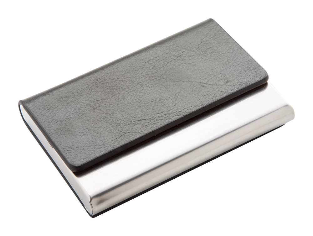 Visitenkartenetui aus Metall (gebürstet) und Kunstleder. In schwarzer Geschenkbox.