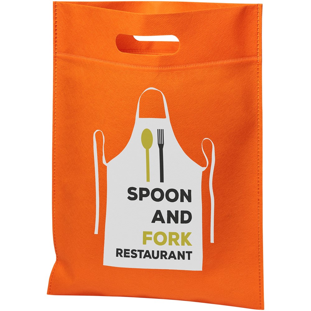 Offenes Hauptfach. Gestanzter Tragegriff. Verschweißte Konstruktion mit schlankem Design. Wiederverwendbar und eine großartige Alternative zu Plastiktüten oder für Messen und Tagungen.