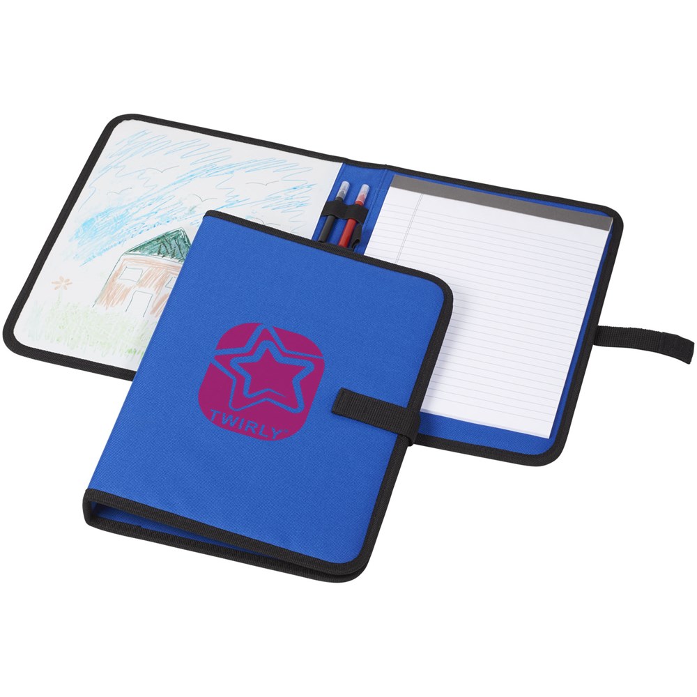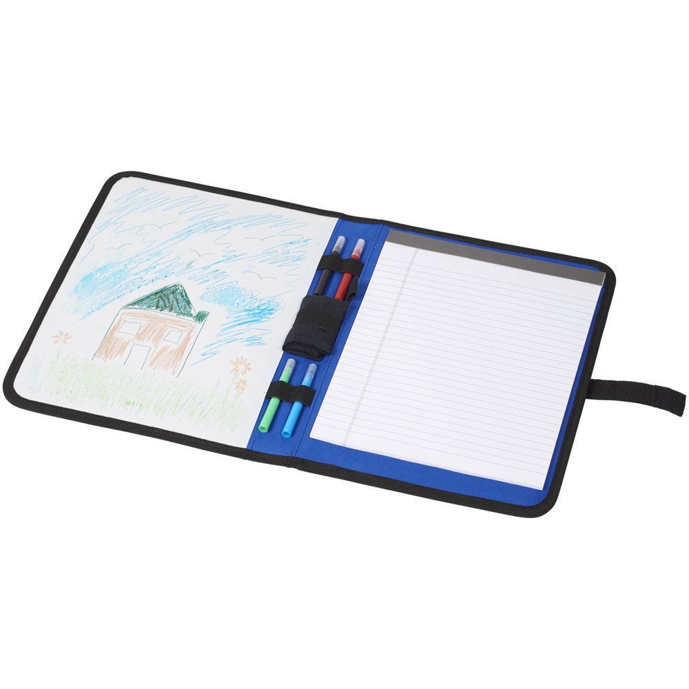 A4 Mappe mit Klettverschluss. Mit Whiteboard und Notizblock mit linierten 30 Seiten. Marker mit Wischtuch im Lieferumfang enthalten.