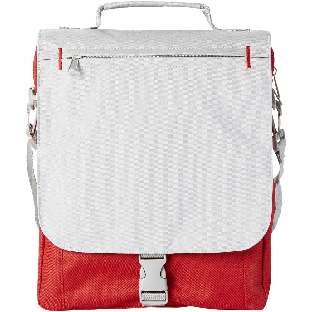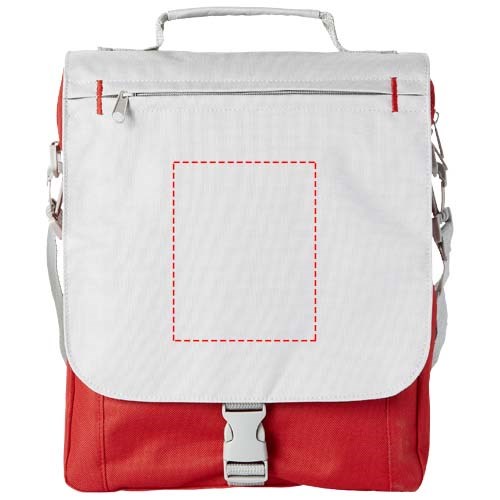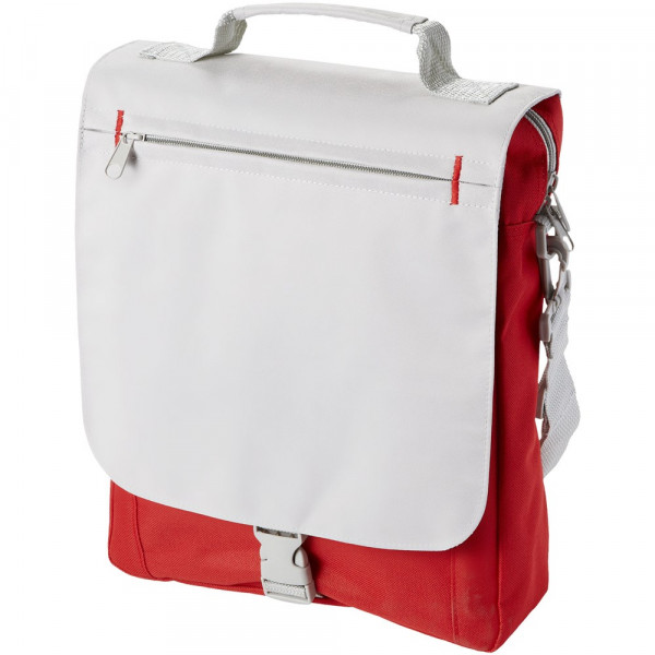 Schultertasche mit einstellbarem Schulterriemen, gepolstertem Griff, Reißverschlussfach vorne, Hauptfach mit Reißverschluss und Organisationsfach unter der Klappe.