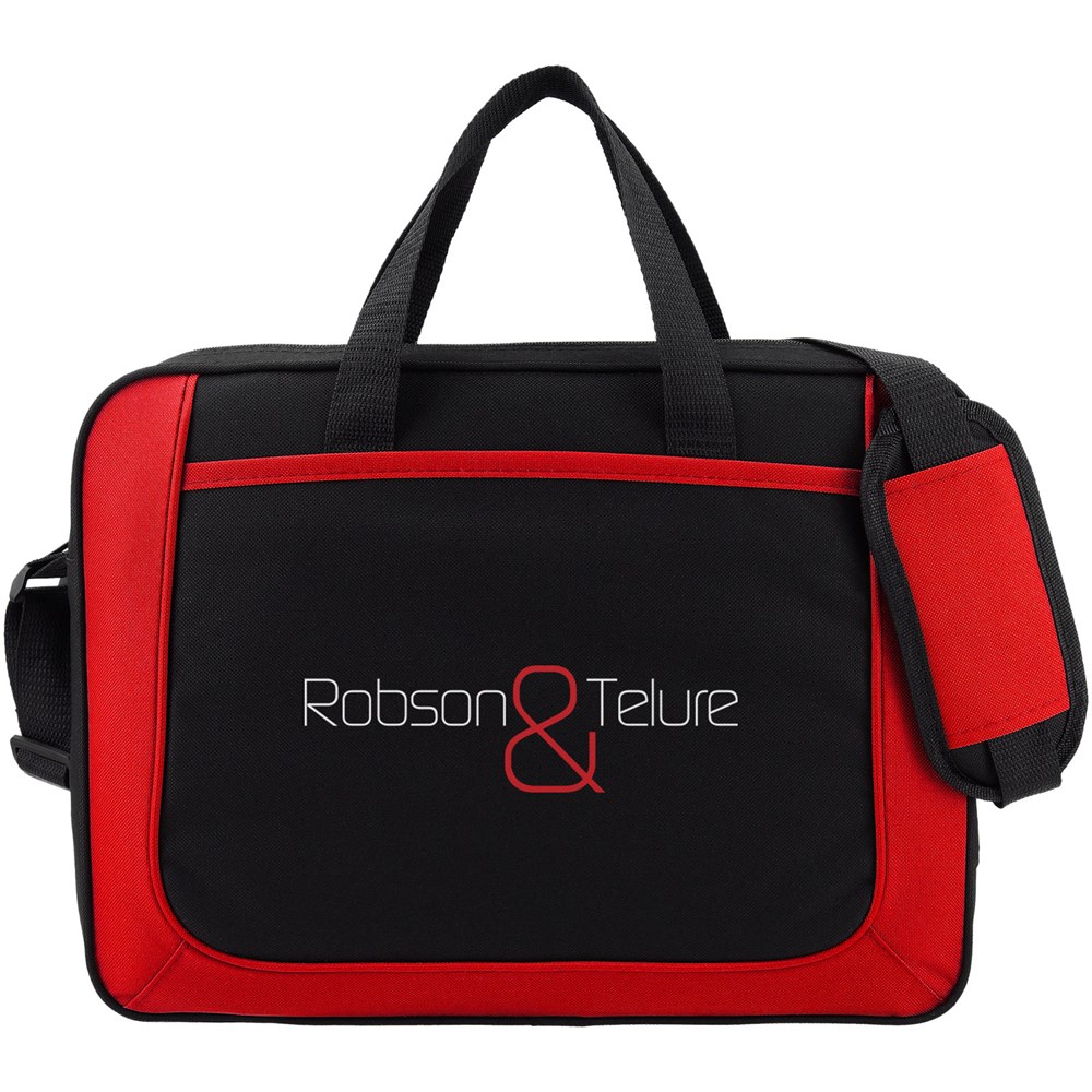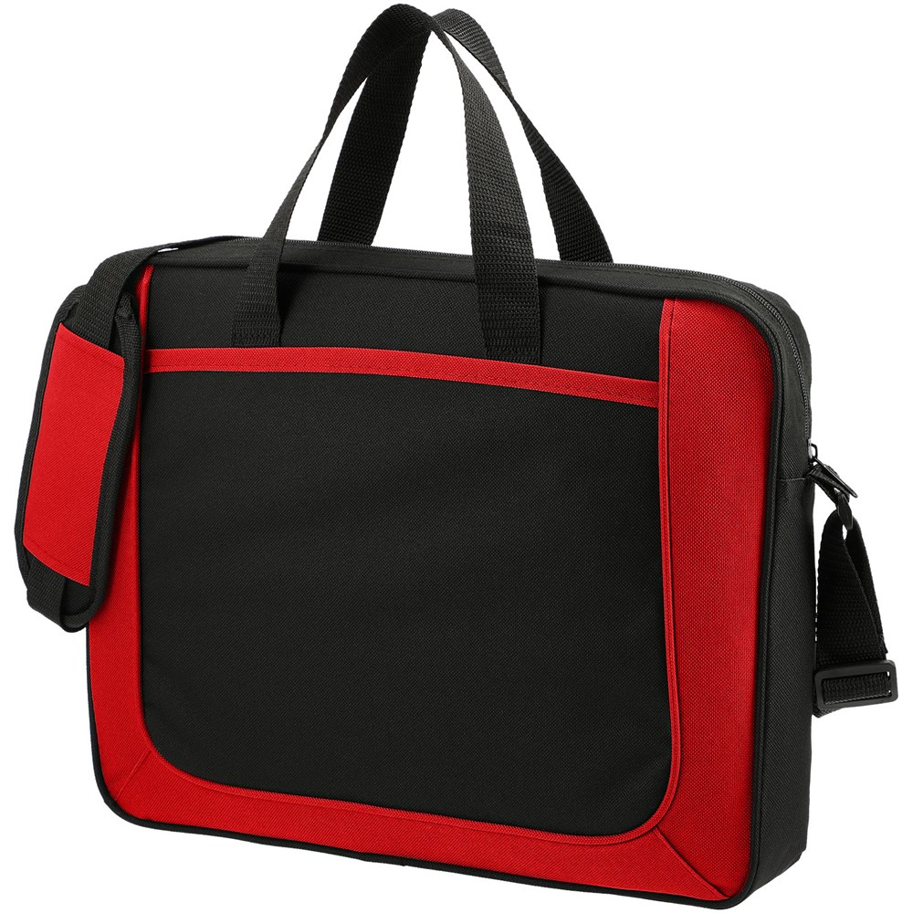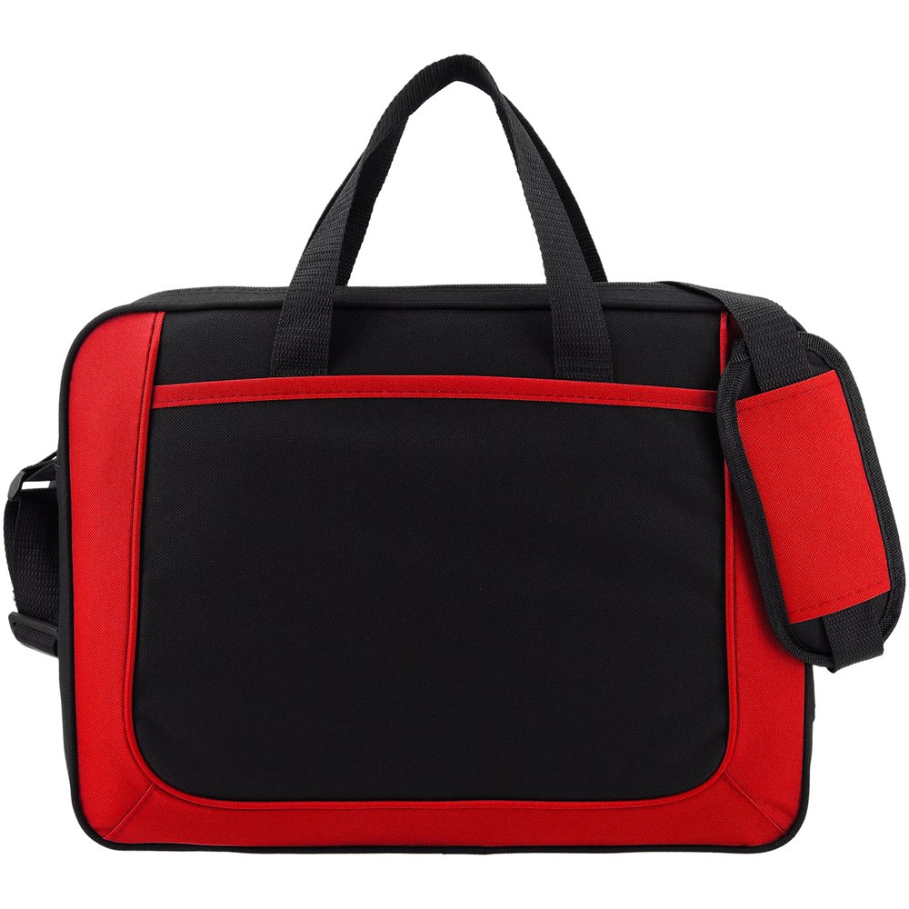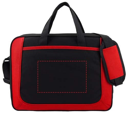 Hauptfach mit Reißverschluss mit zwei verstärkten Tragegriffen oben. Offenes Fach vorne. Seitliche Zubehörfächer und Stifthüllen. Verstellbarer, gepolsterter Schulterriemen.