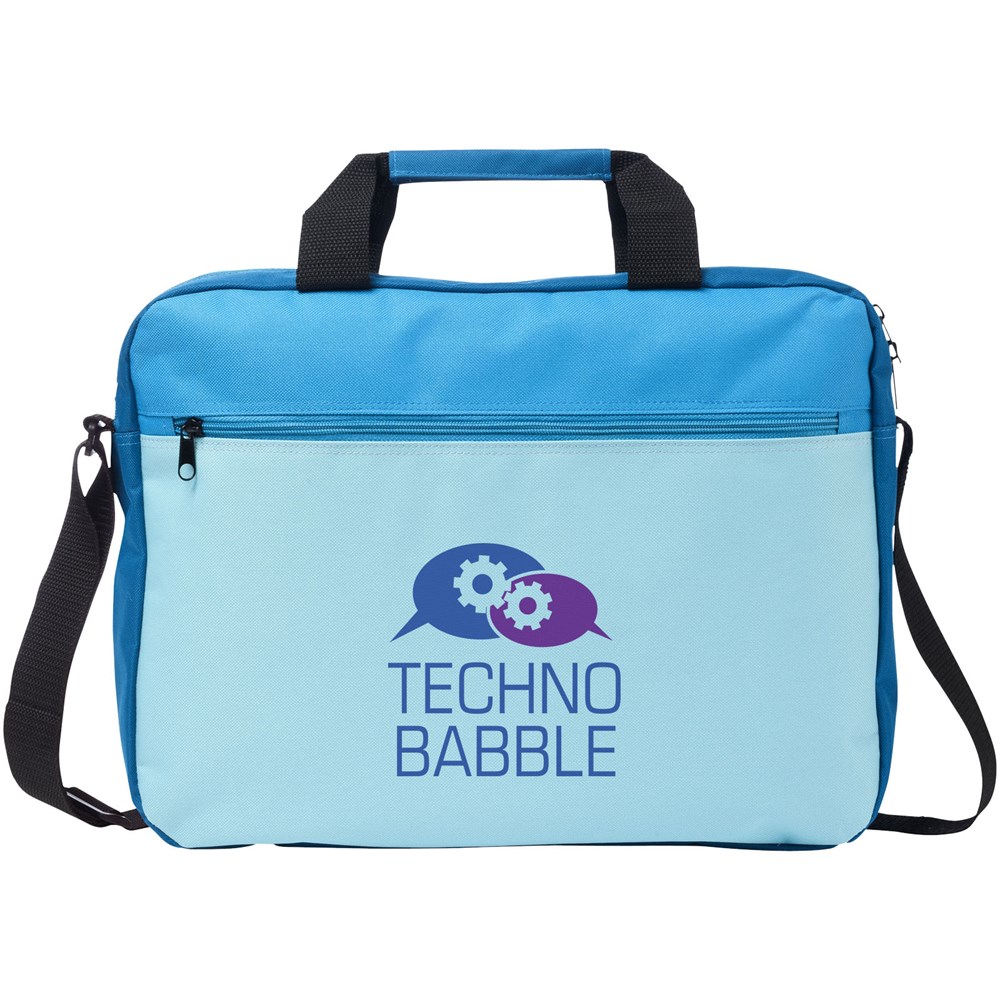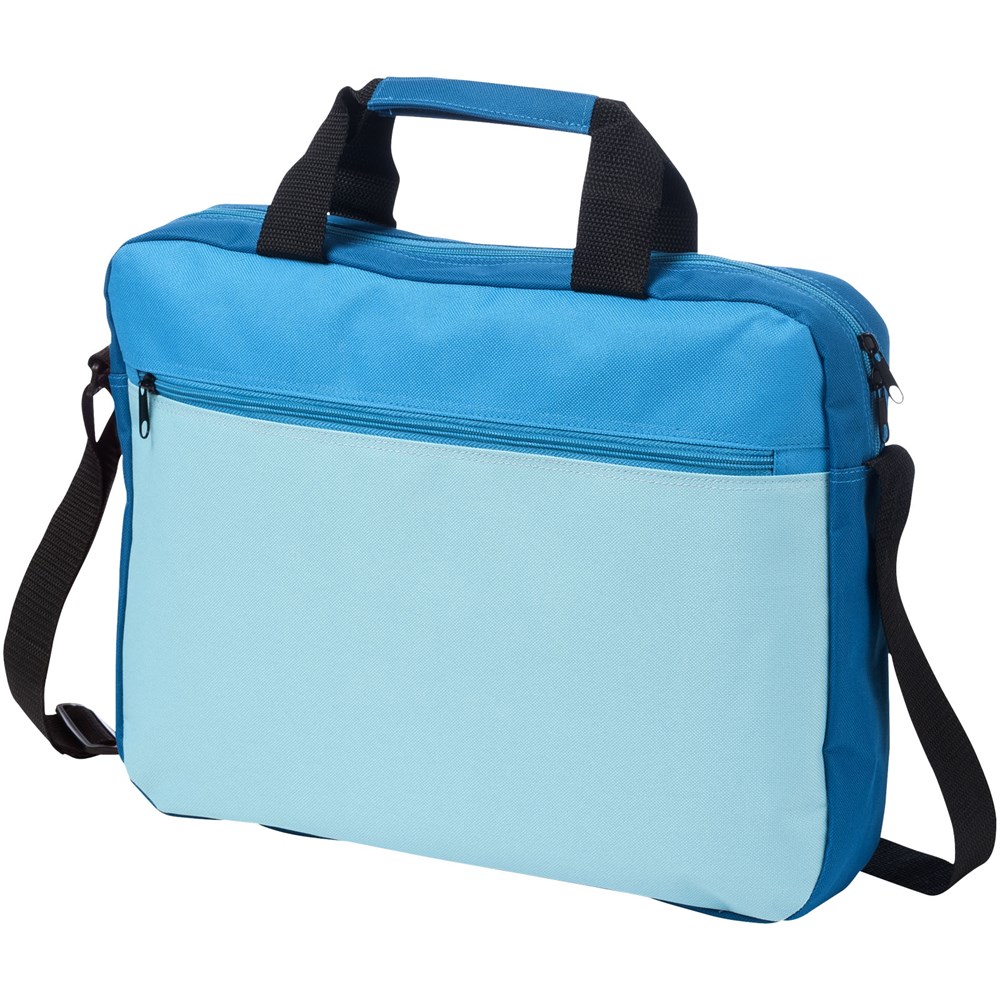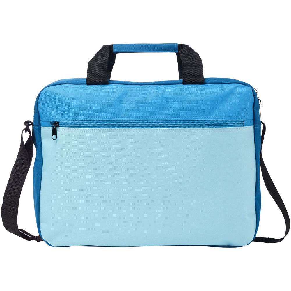 Diese Dokumententasche in Trendfarben hat ein Hauptfach mit Reißverschluss, eine Reißverschlusstasche vorne und einen einstellbaren Schulterriemen.