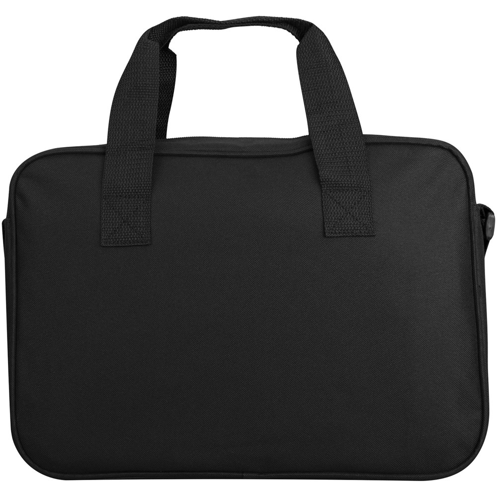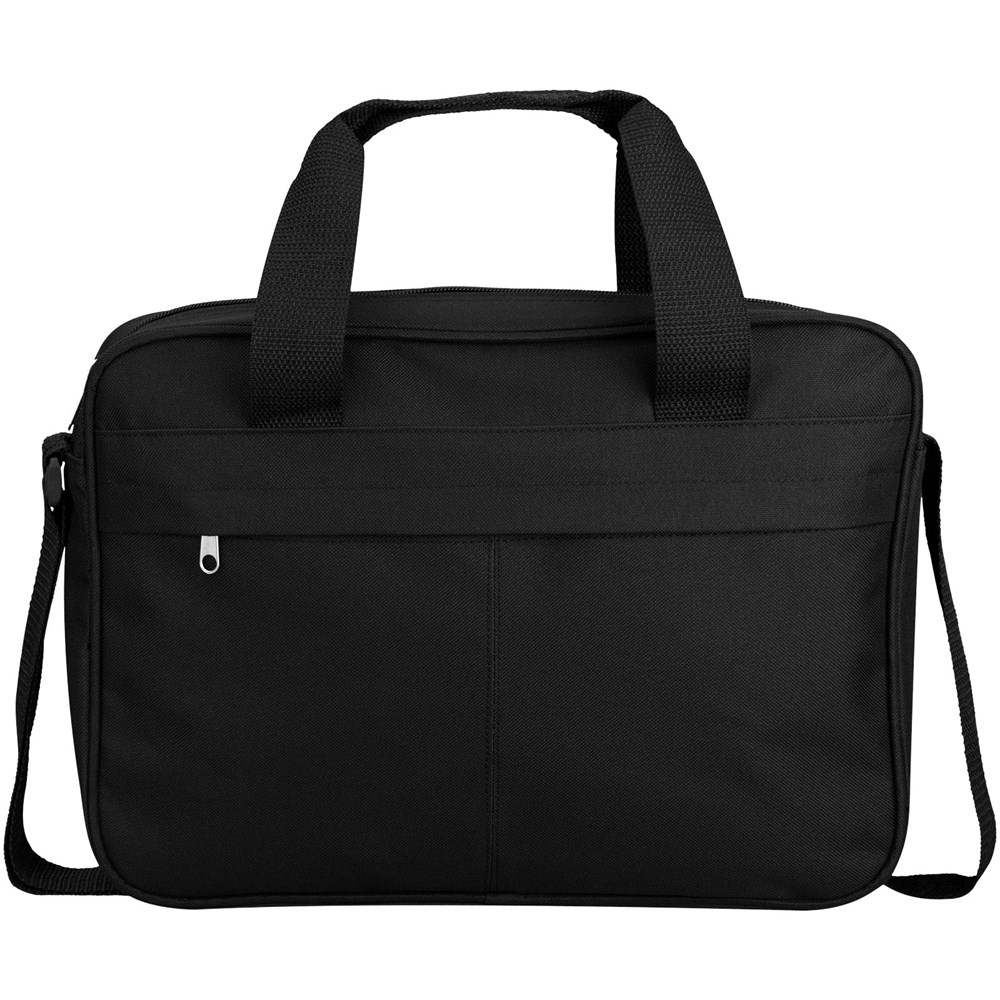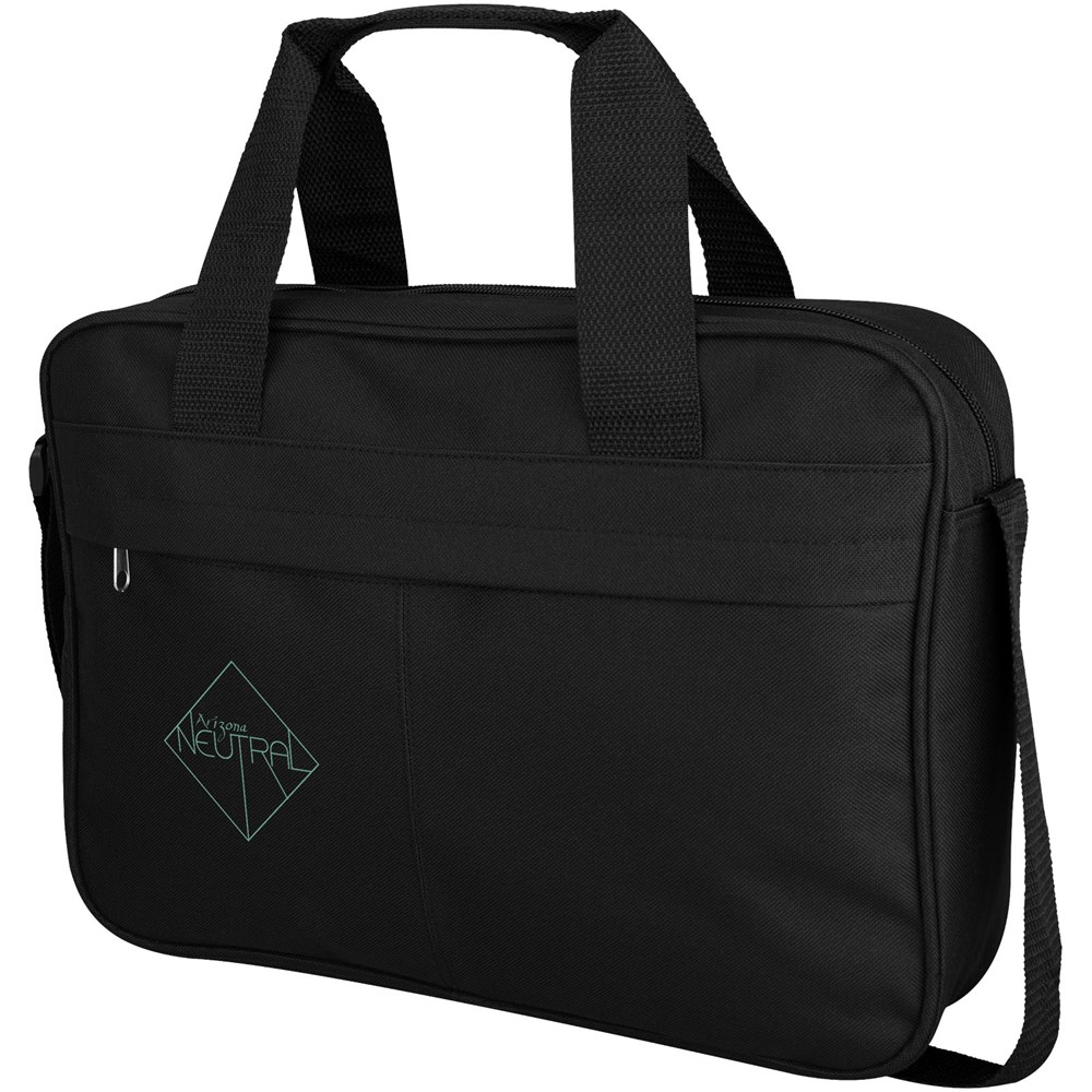 Konferenztasche mit einem großen Hauptfach mit Reißverschluss und großem Frontfach mit verstecktem Reißverschluss. Verstärkter doppelter Tragegriff mit Polster. Verstellbarer Schulterriemen.