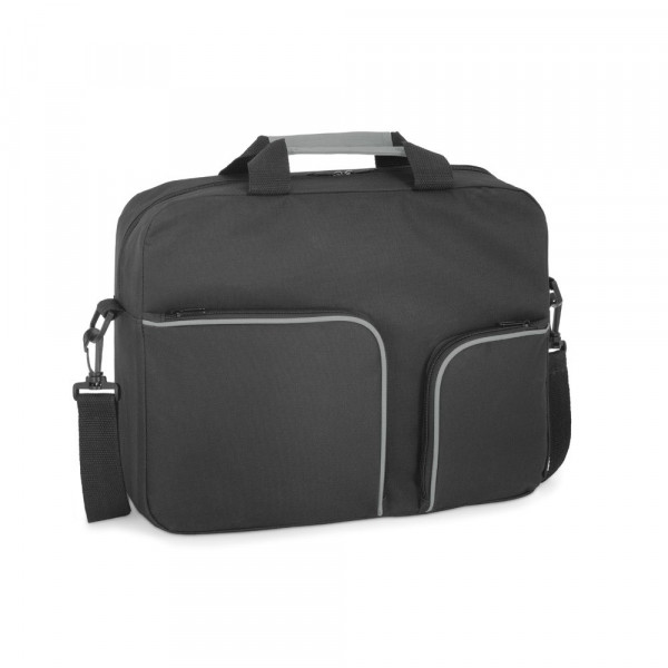 Schultertasche aus 600D mit 2 Vordertaschen und einem verstellbaren Schultergurt. Die Vordertaschen verleihen diesem Artikel ein modernes Design. 380 x 300 x 80 mm