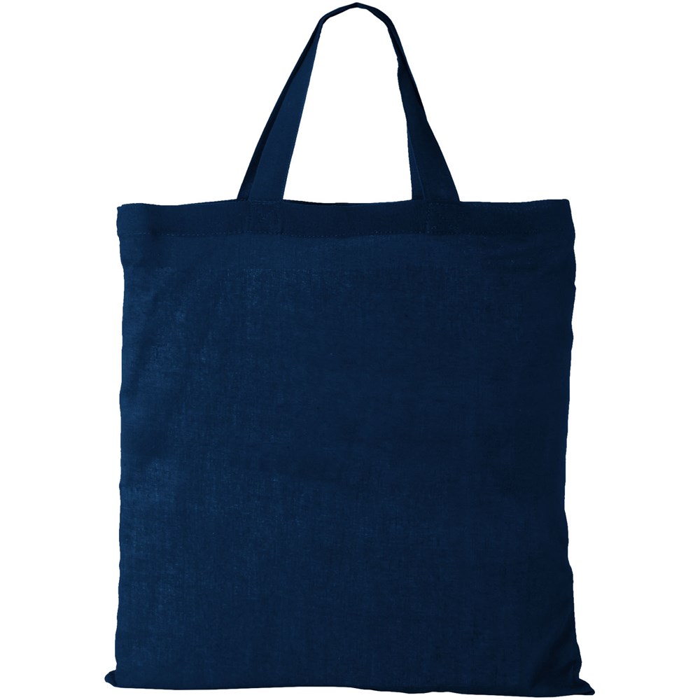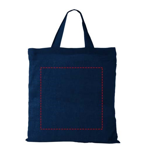 Tasche mit kurzen Henkeln und offenem Hauptfach. 19 cm lange Tragegriffe.