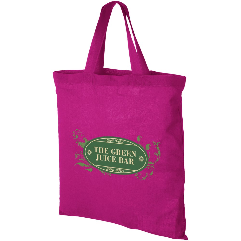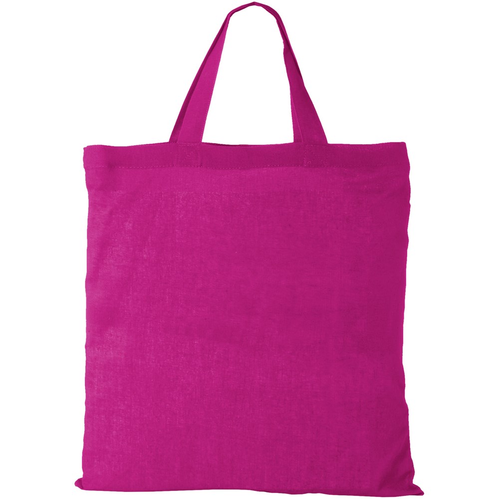 Tasche mit kurzen Henkeln und offenem Hauptfach. 19 cm lange Tragegriffe.