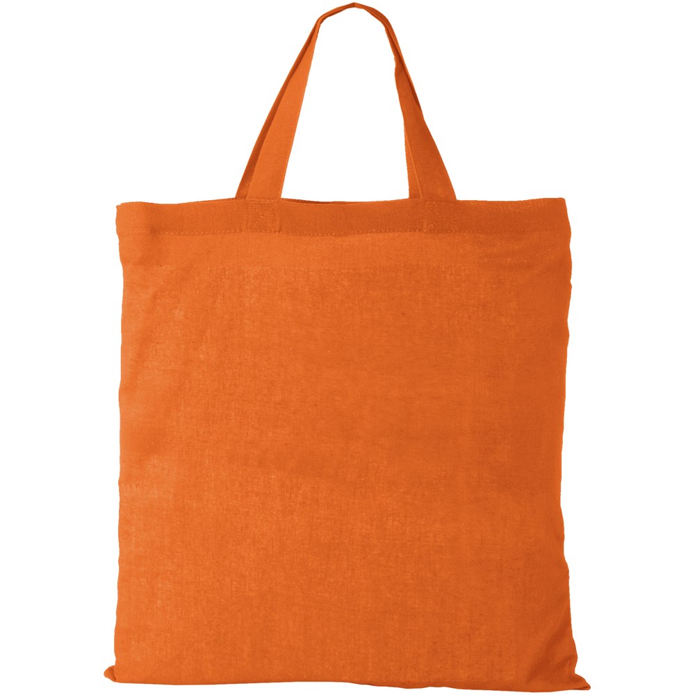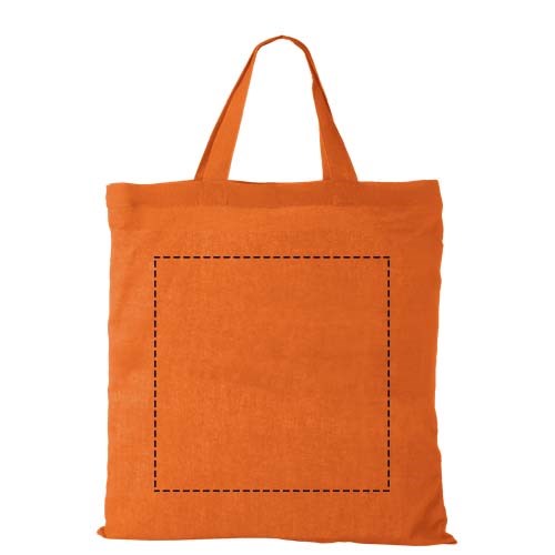 Tasche mit kurzen Henkeln und offenem Hauptfach. 19 cm lange Tragegriffe.