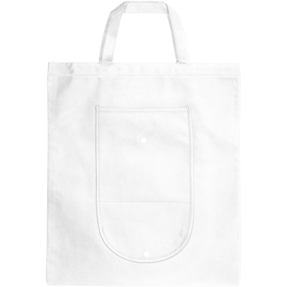 Faltbare Tragetasche mit einem offenen Hauptfach und offenem Einsteckfach auf der Vorderseite. Kunststoff Druckknopfverschluss. Wiederverwendbar und eine gute Alternative zu Plastiktüten. Tragegriffhöhe 14 cm. Größe gefaltet: 20 x 11cm. Artikel wird nicht gefaltet, flach geliefert.