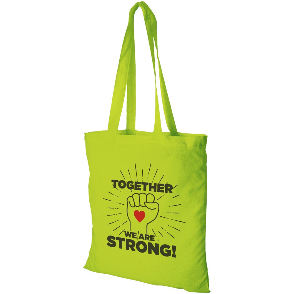 Baumwolltasche mit offenem Hauptfach. Tragegriffhöhe 30 cm.