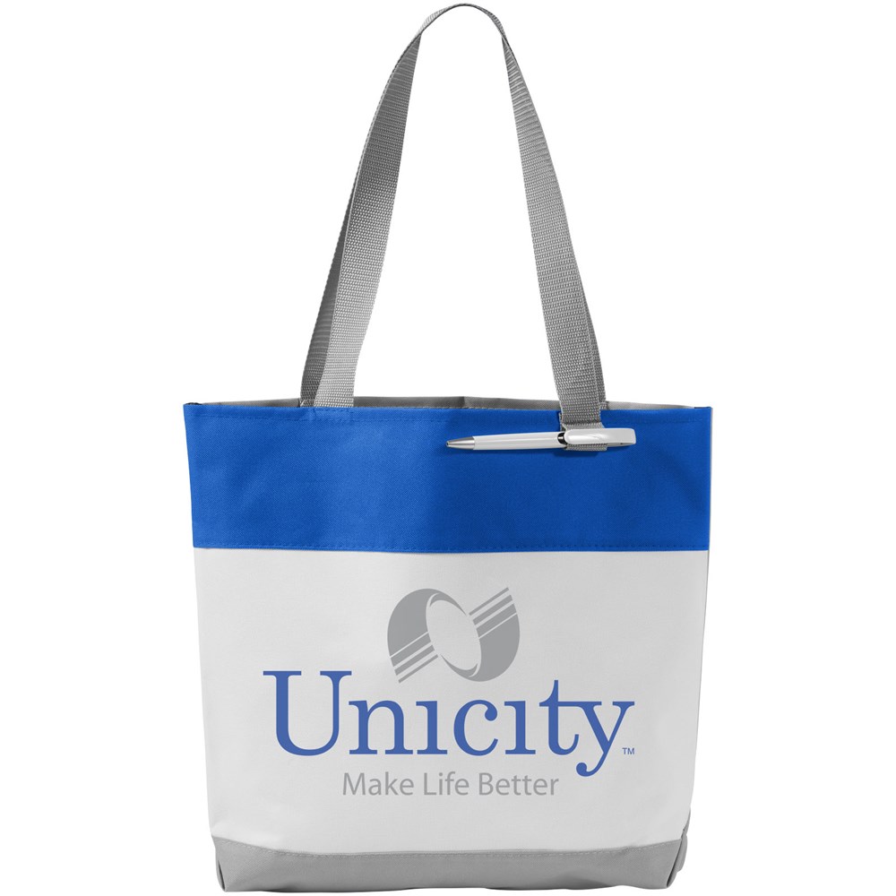 Frischer, kostengünstiger Taschenstil für Messen, Kongresse und Geschäftsbesprechungen in erfrischenden Farbtönen und dem beliebten Color-Dip-Trend. Offenes Hauptfach und Stiftschlaufe vorne. Tragegriffhöhe 27 cm.