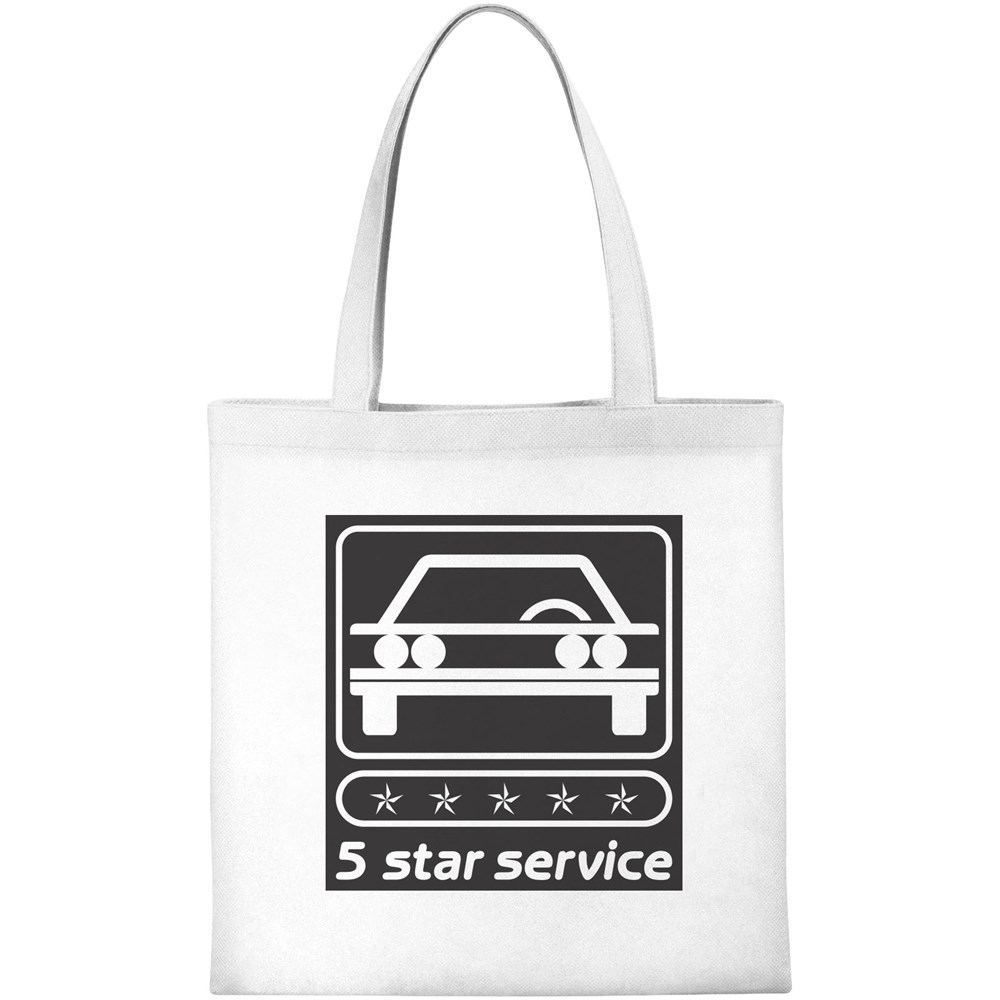 Schmales Design, perfekt für Konferenzen und Messen. Offenes Hauptfach mit 21 cm langen Tragegriffen. Wiederverwendbar und eine großartige Alternative zu Plastiktüten.
