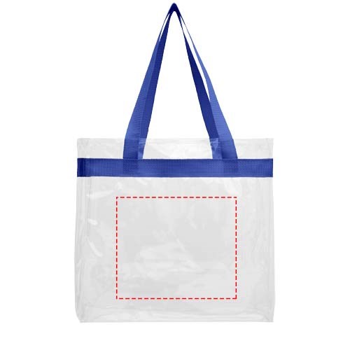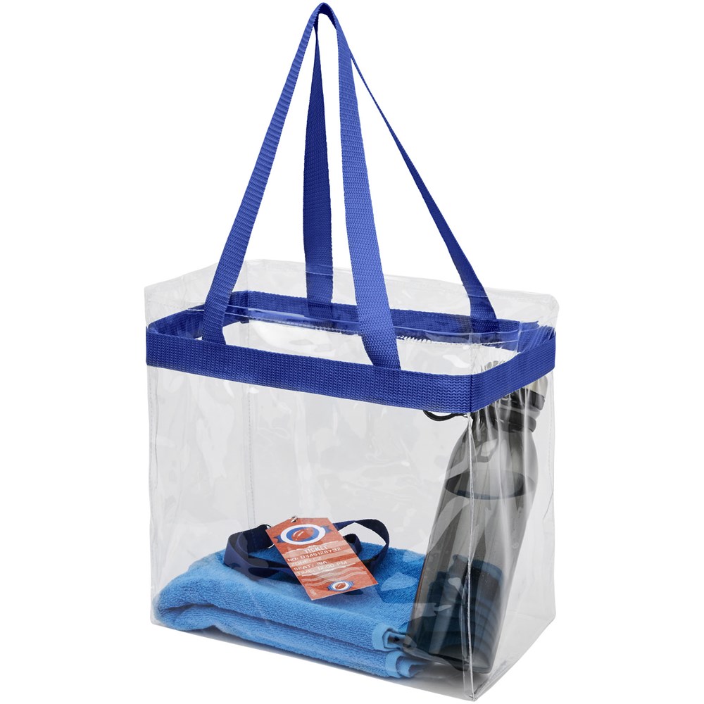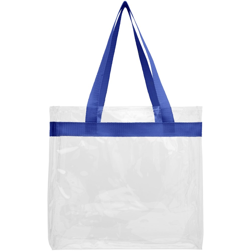 Diese durchsichtige Tasche ist perfekt für Fans auf dem Weg ins Stadion und die sichere Unterbringung von Dingen für Veranstaltungstage. Auch großartig für die Sicherheit bei der Arbeit und in der Schule geeignet. Offenes Hauptfach mit sportlicher Bandverzierung und zwei Henkeln. 27 cm lange Tragegriffe.