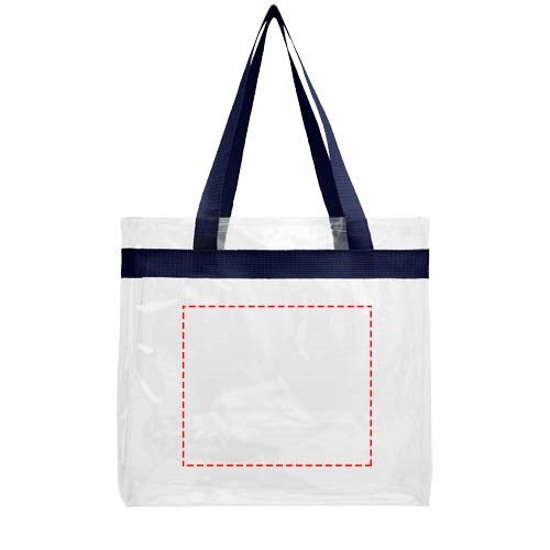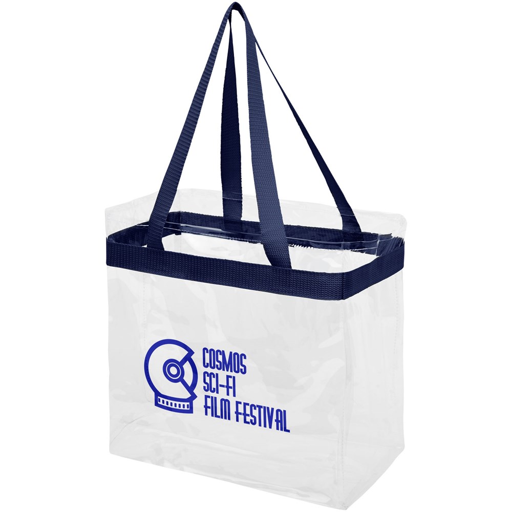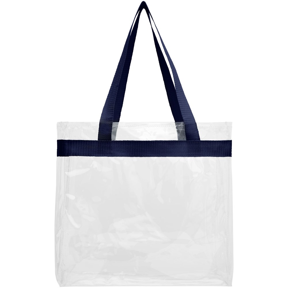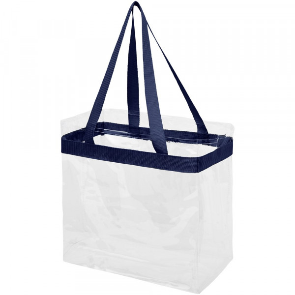Diese durchsichtige Tasche ist perfekt für Fans auf dem Weg ins Stadion und die sichere Unterbringung von Dingen für Veranstaltungstage. Auch großartig für die Sicherheit bei der Arbeit und in der Schule geeignet. Offenes Hauptfach mit sportlicher Bandverzierung und zwei Henkeln. 27 cm lange Tragegriffe.