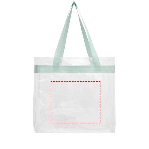 Diese durchsichtige Tasche ist perfekt für Fans auf dem Weg ins Stadion und die sichere Unterbringung von Dingen für Veranstaltungstage. Auch großartig für die Sicherheit bei der Arbeit und in der Schule geeignet. Offenes Hauptfach mit sportlicher Bandverzierung und zwei Henkeln. 27 cm lange Tragegriffe.