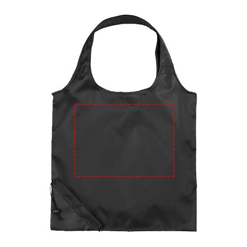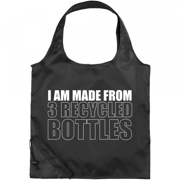 Packaway 210D 51 % PET-Polyester-Einkaufstasche mit passendem Beutel für einfache Aufbewahrung. Die Rückseite der Tasche ist mit dem Text „I am made from 3 recycled bottles“ bedruckt.