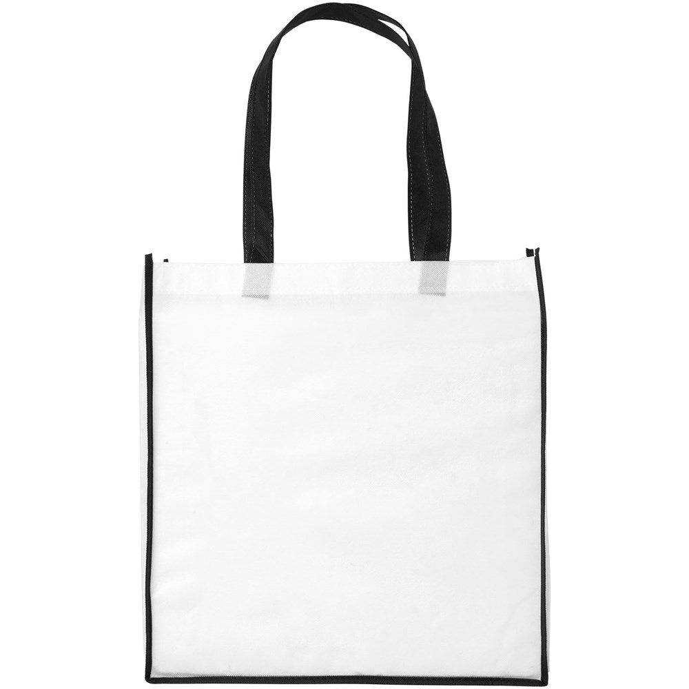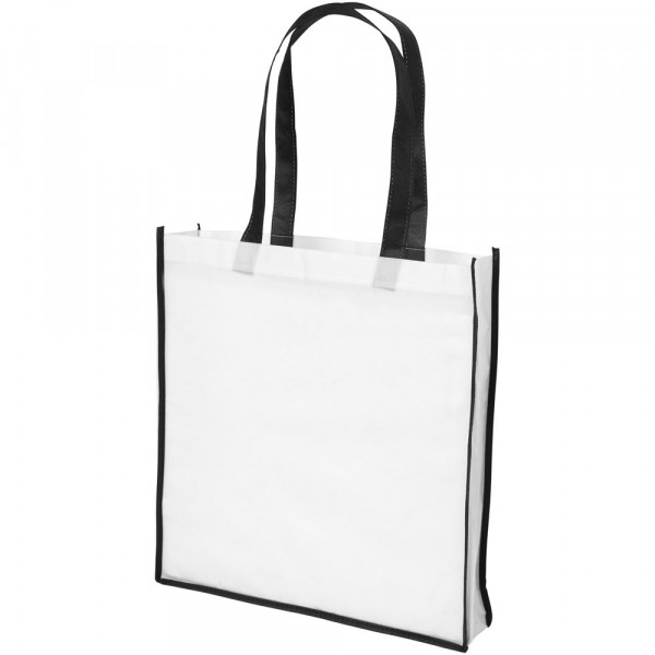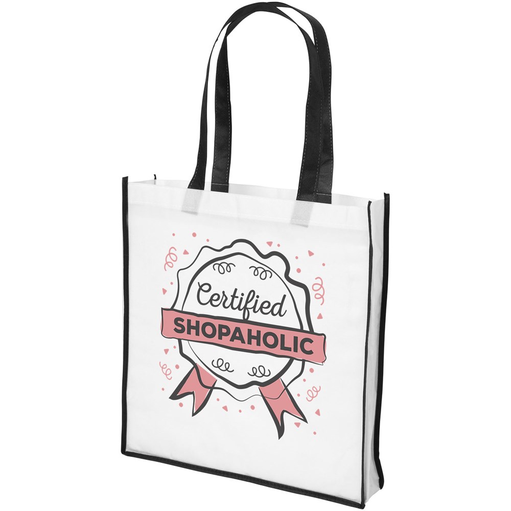 Eine Einkaufstasche aus PP-NonWovenmaterial mit farbigen Griffen und Kanten. Frisches und farbenfrohes Design. Große und praktische Version der Contrast Mini Einkaufstasche.