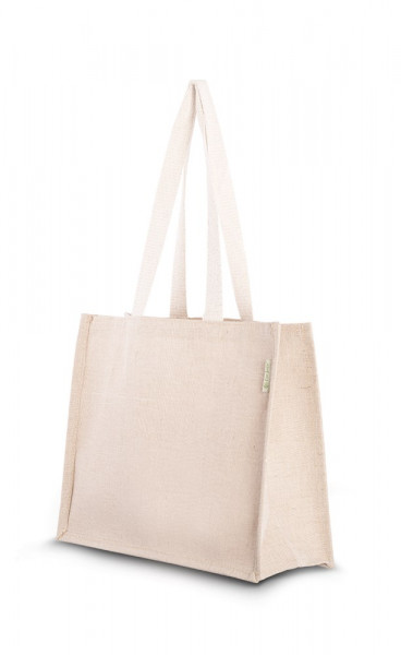 Juco Tasche Handy. Juco = 75% Jute und 25% Baumwolle. Mit luxuriösen wattierten Baumwollgriffen. Einkaufstasche.