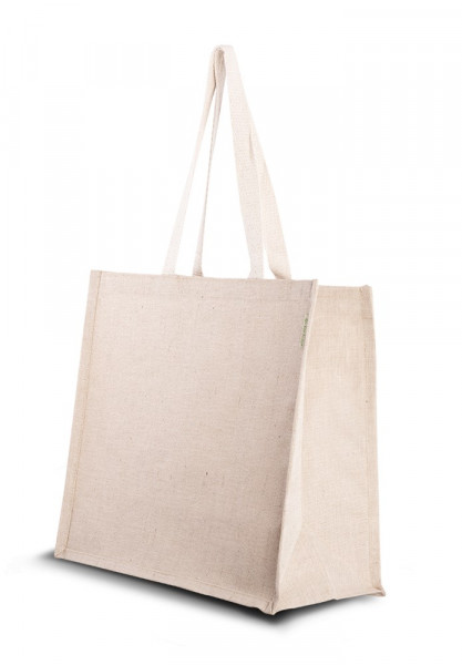 Juco Tasche Adventure. Juco = 75% Jute und 25% Baumwolle. Mit luxuriösen wattierten Baumwollgriffen. Einkaufstasche.
