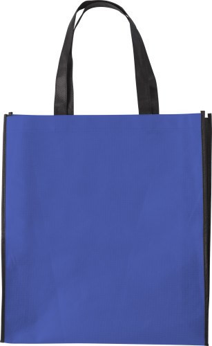 Einkaufstasche aus Non-Woven, zweifarbig, mit 8 cm Boden- und Seitenfalte und kurzen Henkeln.