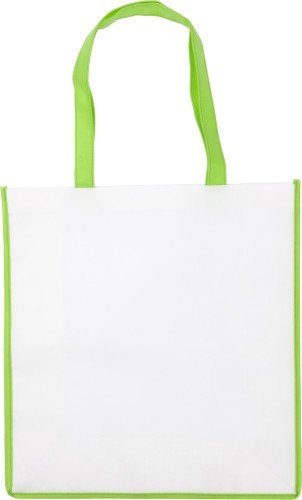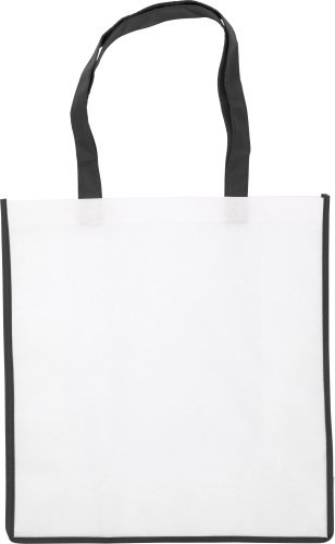 Einkaufstasche aus Non-Woven, inklusive 13 cm Boden- und Seitenfalte, farbige Applikationen.