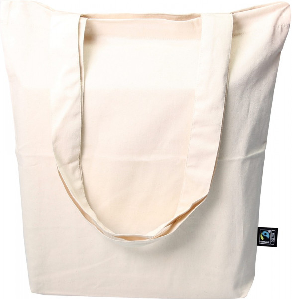 Fairtrade-zertifizierte Baumwolltasche in Twillbindung mit langen Henkeln (ca. 70 cm), Grammatur: 200 g/m², Zertifizierung: OEKO TEX Standard 100, Fairtrade, 38 x 42 cm, Siebdruck bzw. Transferdruck, ca. 28 x 30 cm (Druck)