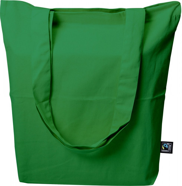 Fairtrade-zertifizierte Baumwolltasche in Twillbindung mit langen Henkeln (ca. 70 cm), Grammatur: 200 g/m², Zertifizierung: OEKO TEX Standard 100, Fairtrade, 38 x 42 cm, Siebdruck bzw. Transferdruck, ca. 28 x 30 cm (Druck)