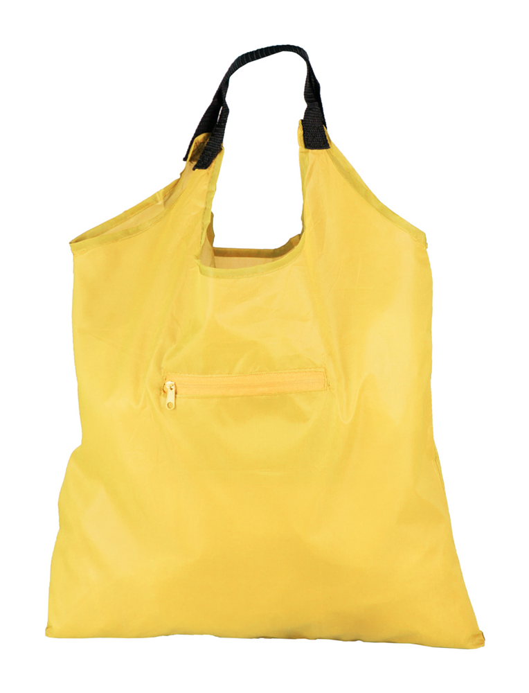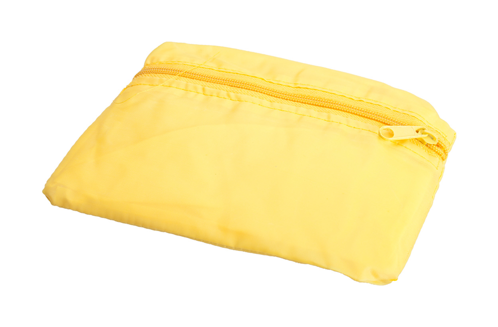 Faltbare Einkaufstasche aus 190T Polyester mit Reißverschlusstasche. Größe (gefaltet): 150×110×10 mm.