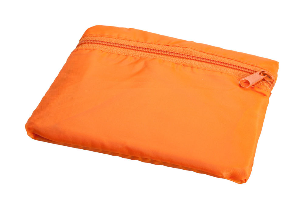 Faltbare Einkaufstasche aus 190T Polyester mit Reißverschlusstasche. Größe (gefaltet): 150×110×10 mm.