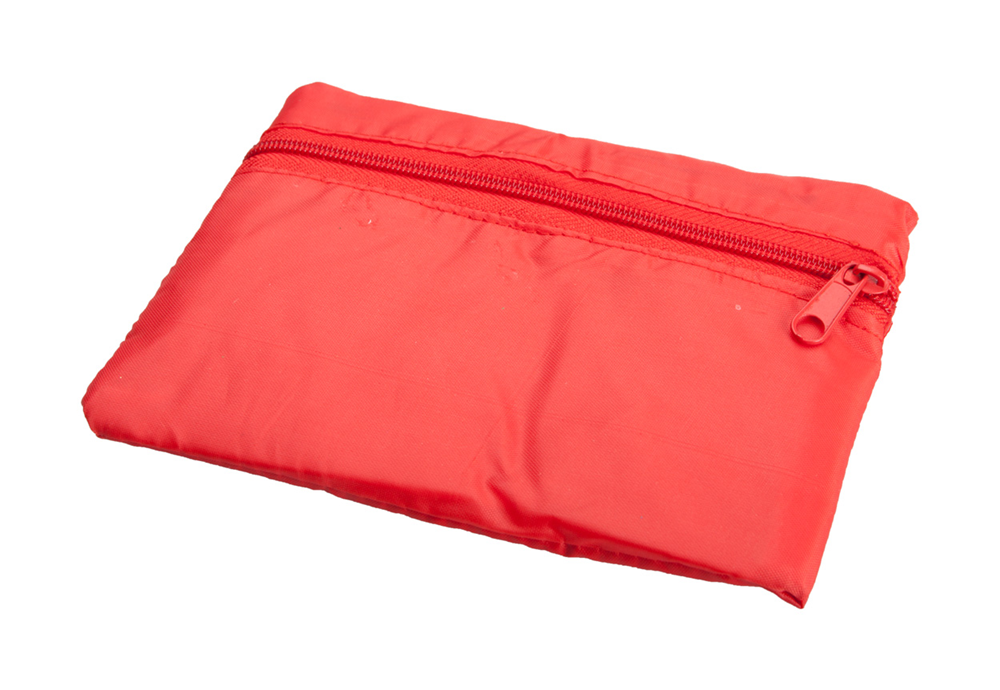 Faltbare Einkaufstasche aus 190T Polyester mit Reißverschlusstasche. Größe (gefaltet): 150×110×10 mm.