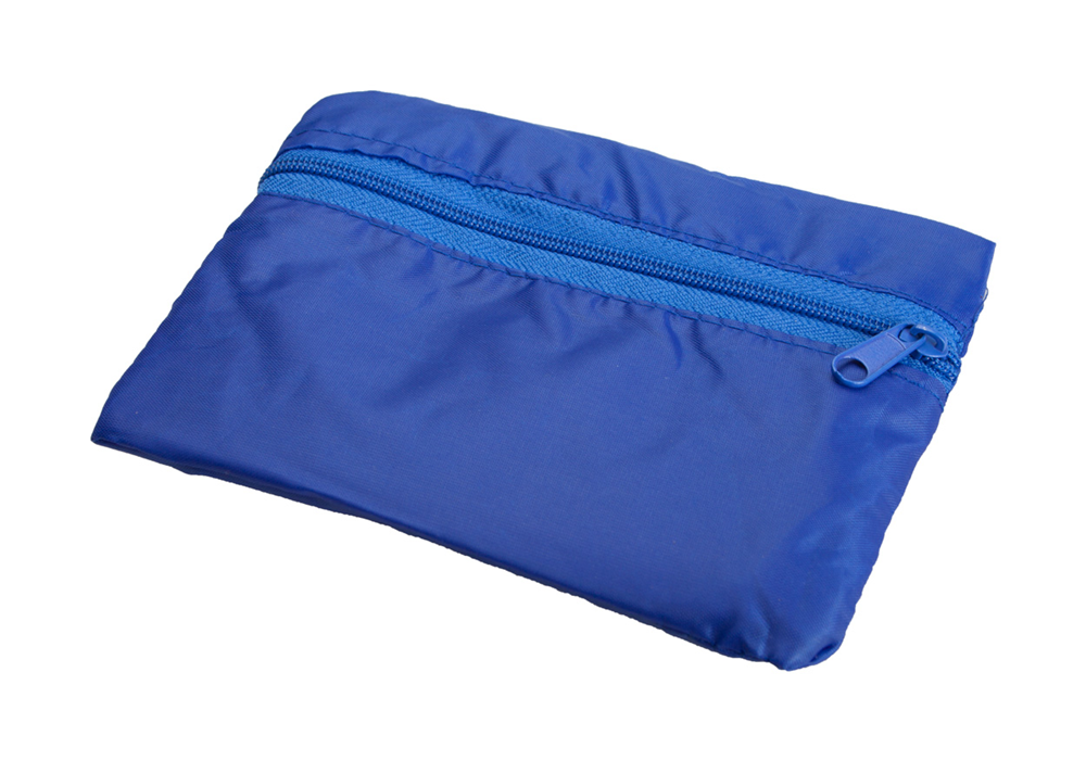 Faltbare Einkaufstasche aus 190T Polyester mit Reißverschlusstasche. Größe (gefaltet): 150×110×10 mm.