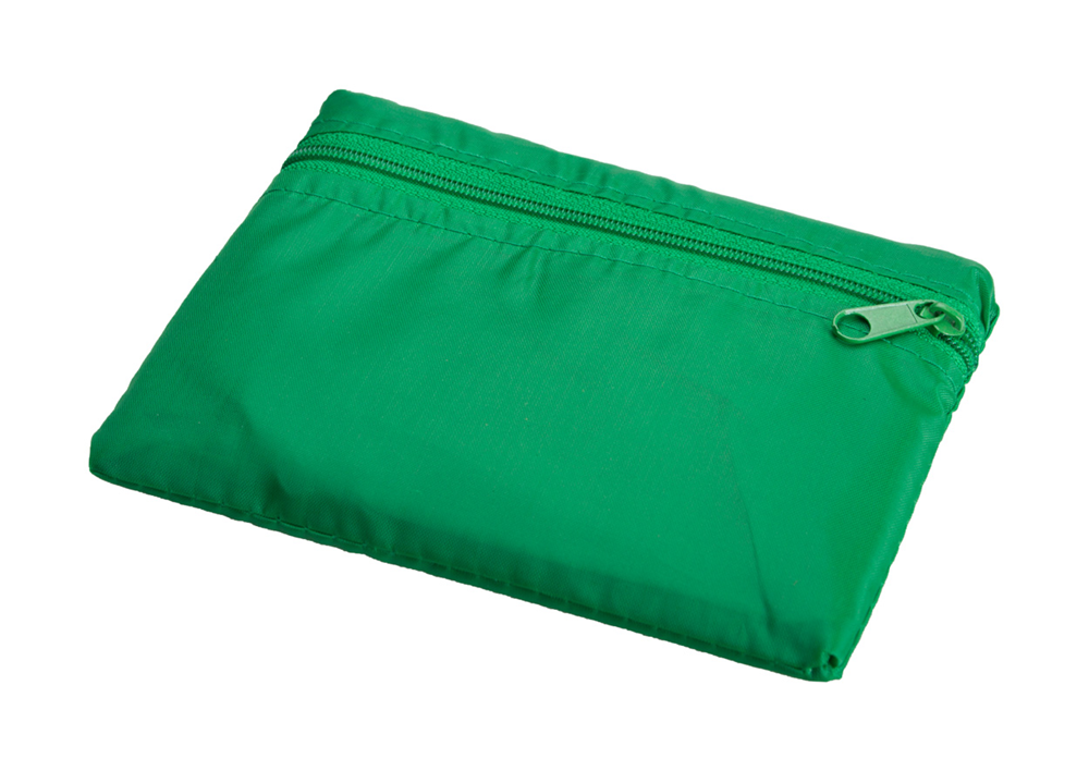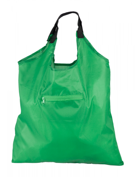 Faltbare Einkaufstasche aus 190T Polyester mit Reißverschlusstasche. Größe (gefaltet): 150×110×10 mm.