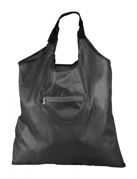 Faltbare Einkaufstasche aus 190T Polyester mit Reißverschlusstasche. Größe (gefaltet): 150×110×10 mm.