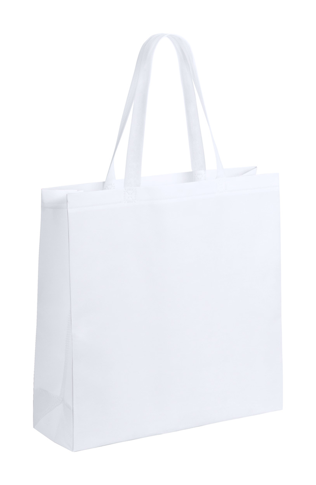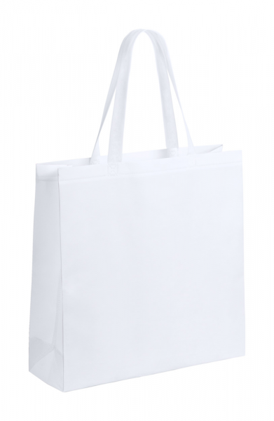 Weiße, laminierte Non-Woven Einkaufstasche mit farbiger Seitenfalte.