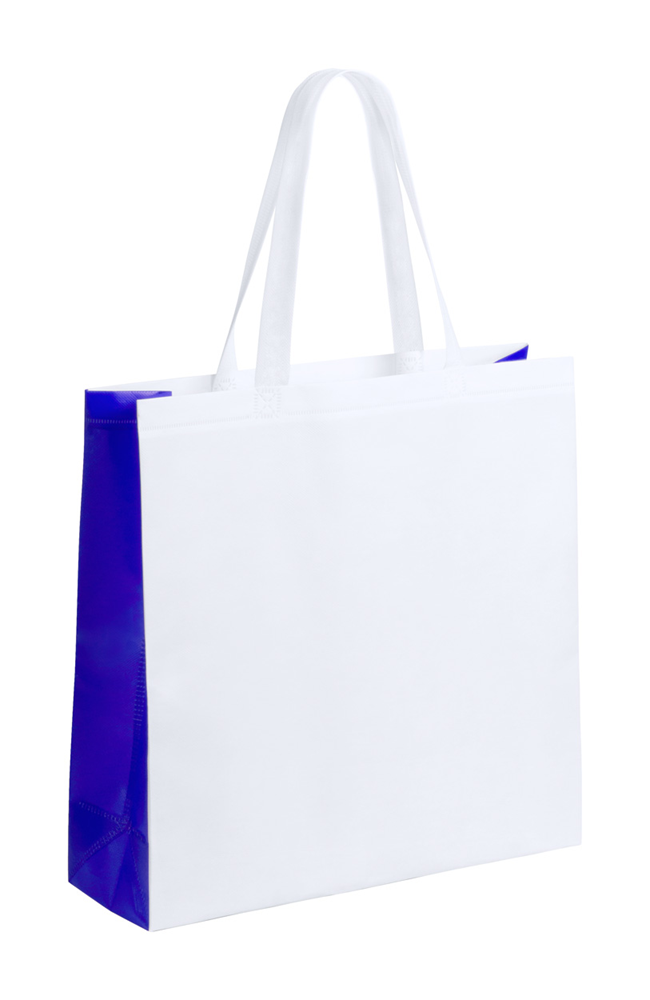 Weiße, laminierte Non-Woven Einkaufstasche mit farbiger Seitenfalte.