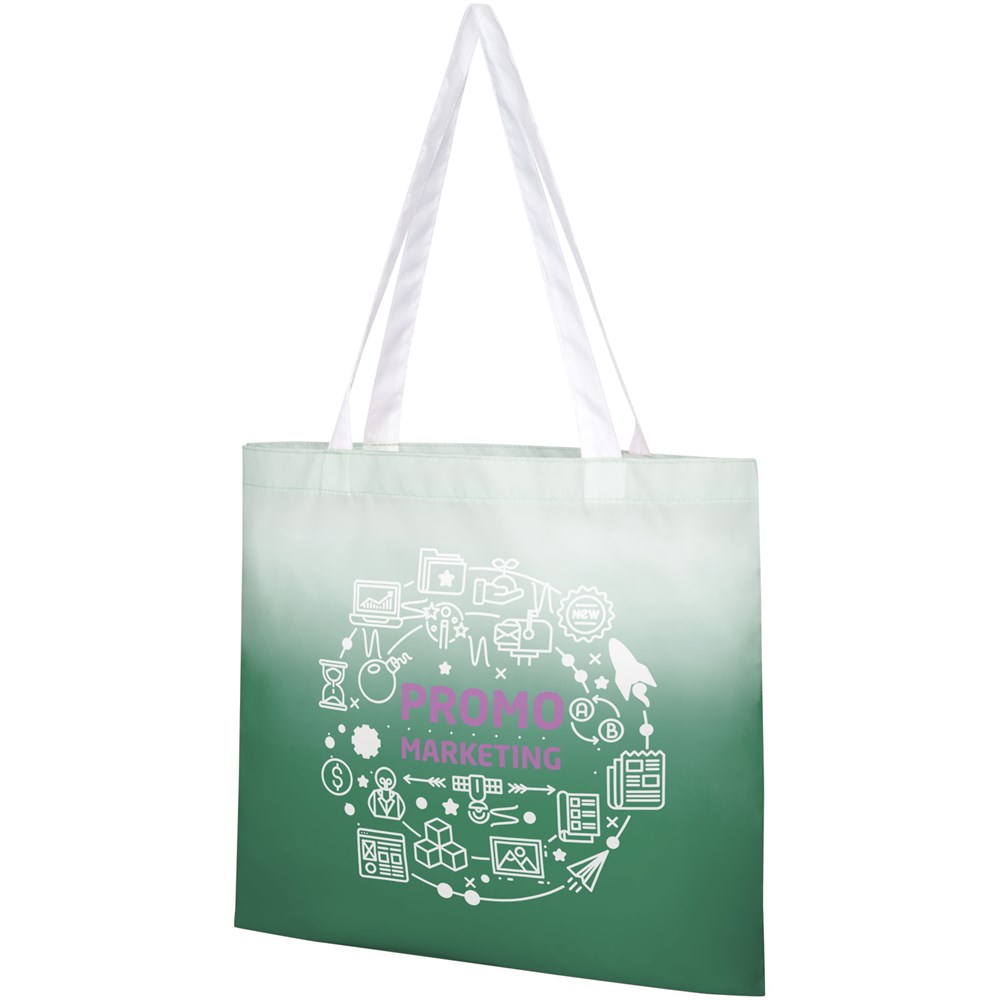Tragetasche mit Farbverlauf, zwei Griffen und einer Tragegriffhöhe von 27 cm.