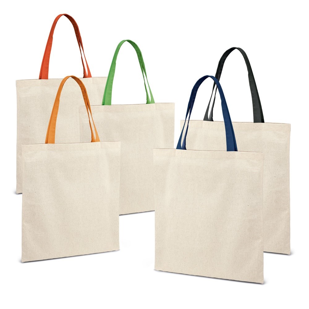 Tragetasche aus 100% Baumwolle (140 g/m²) mit 60 cm langen Henkeln. 375 x 415 mm