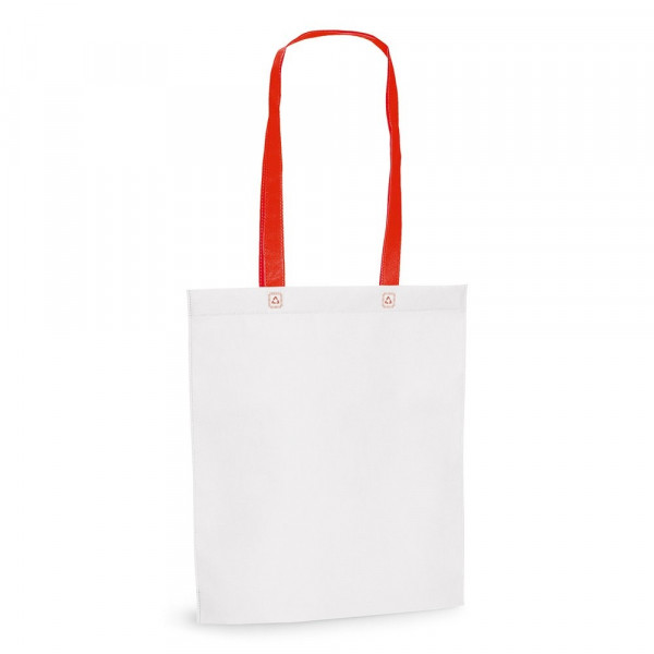 Tragetasche aus Non-Woven (80 g/m²), thermoversiegelt und mit 55 cm langen Henkeln. 330 x 390 x 80 mm