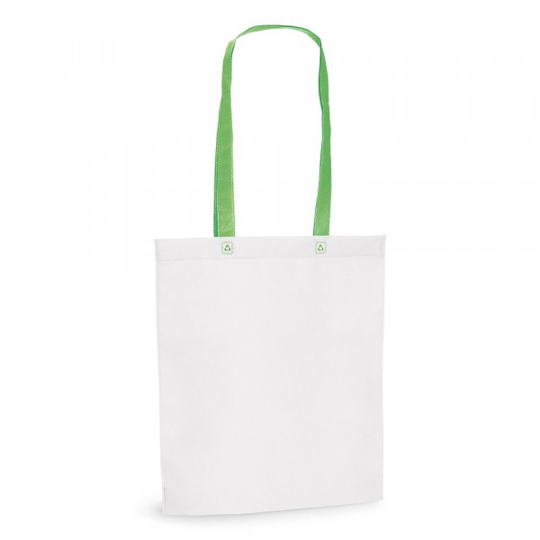 Tragetasche aus Non-Woven (80 g/m²), thermoversiegelt und mit 55 cm langen Henkeln. 330 x 390 x 80 mm