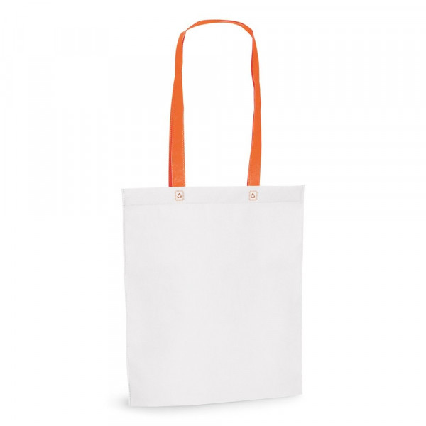 Tragetasche aus Non-Woven (80 g/m²), thermoversiegelt und mit 55 cm langen Henkeln. 330 x 390 x 80 mm