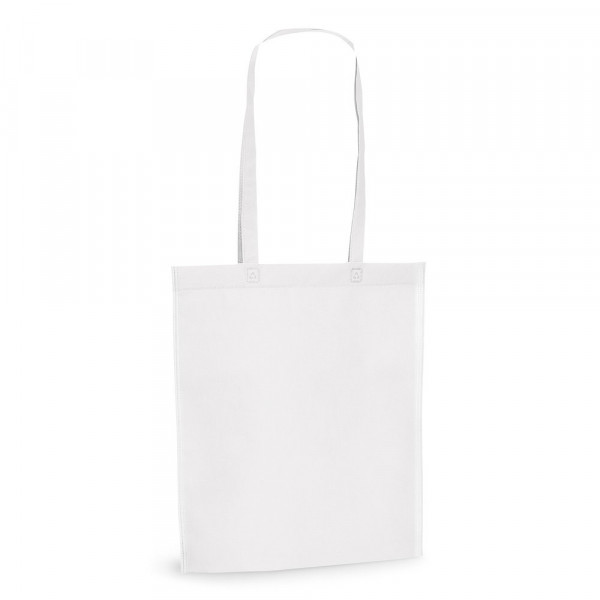 Tragetasche aus Non-Woven (80 g/m²), thermoversiegelt und mit 75 cm langen Henkeln. 380 x 415 x 85 mm