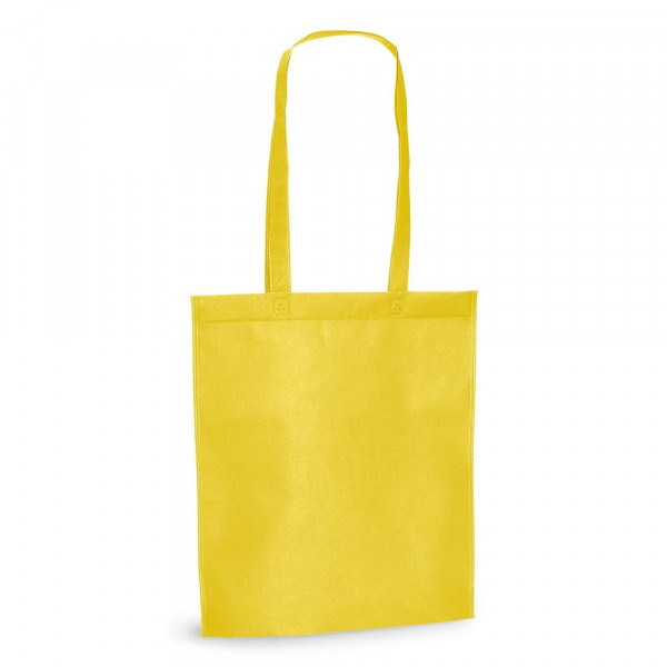 Tragetasche aus Non-Woven (80 g/m²), thermoversiegelt und mit 75 cm langen Henkeln. 380 x 415 x 85 mm