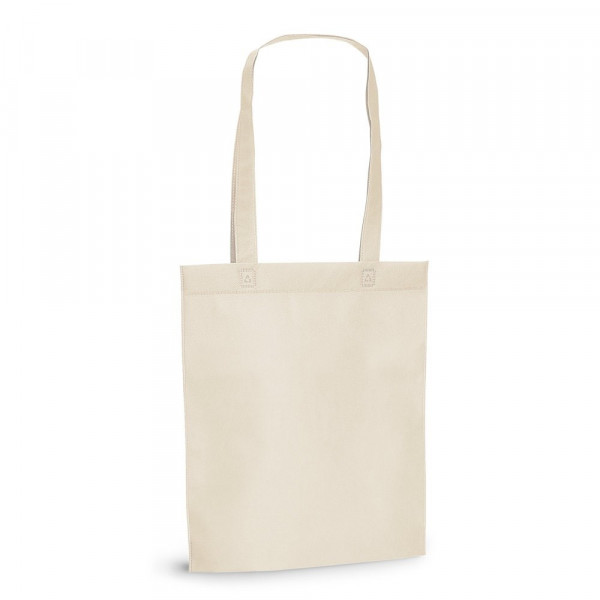 Tragetasche aus Non-Woven (80 g/m²), thermoversiegelt und mit 55 cm langen Henkeln. 270 x 350 mm