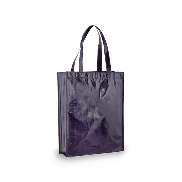 Non-Woven-Tasche aus laminiertem Faservlies (80 g/m2) mit Metallic-Finish in einer Vielzahl von lebendigen Farben. Mit 50 cm langen Henkeln und verstärktem Zwickel mit Paspel. Belastbar mit bis zu 7 kg.
