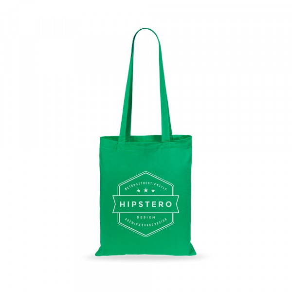 Tasche aus 100 % Baumwolle in verschiedenen kräftigen Farben. Mit 70 cm langen Griffen und Steppnähten. Belastbar mit bis zu 7 kg.