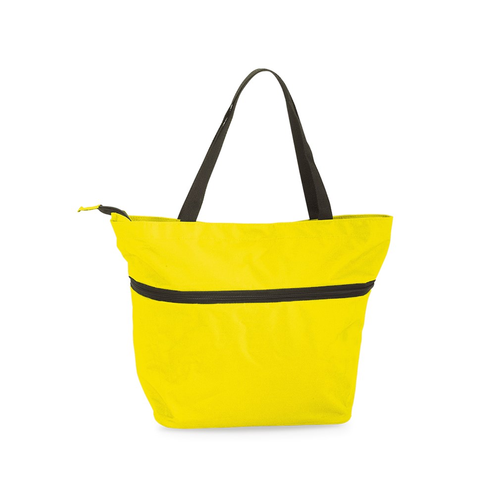 Erweiterbare Einkaufstasche aus robustem 600D Polyester in einer großen Auswahl von kräftigen Farben. Mit verstärkten Nylonhenkeln, Reißverschluss sowie einem zweiten Reißverschluss zur Erweiterung der Tasche. Mit Metall-Standbeinen.