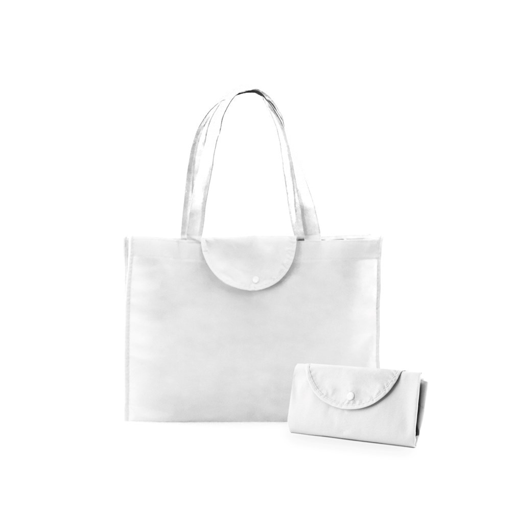 Faltbare Non-Woven-Tasche aus Faservlies (90 g/m2) in verschiedenen lebendigen Farben. Mit 56 cm langen Griffen, farblich passender Verschlussklappe mit Knopf, verstärkten Zwickeln mit Paspel und Steppnähten. Faltbar auf kleine Größe. Belastbar mit bis zu 9 kg.