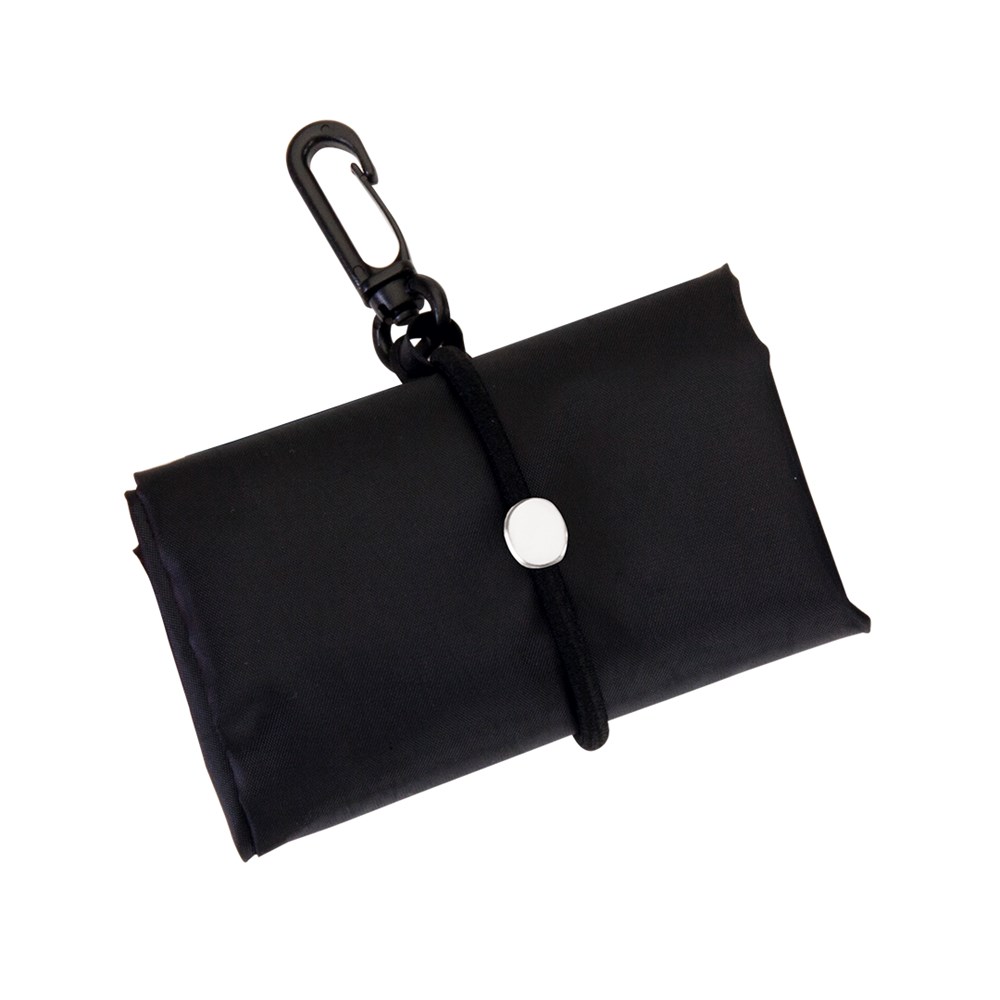 Faltbare Tasche in verschiedenen fröhlichen Farben. Hergestellt aus weichem 190T Polyester, mit Steppnähten und Befestigungskarabiner sowie Gummiband zum Fixieren der Tasche im gefalteten Zustand.