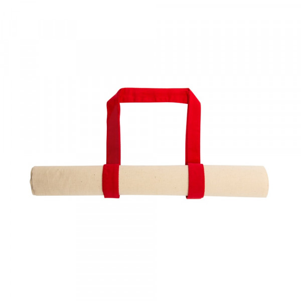Tasche aus 100 % Baumwolle in Naturfarbe. Mit 70 cm langen Henkeln in verschiedenen kräftigen Farben und Steppnähten. Belastbar mit bis zu 7 kg.